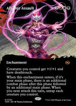 The Borderless Clan cards represent the five clans, with a colourful backdrop featured. We're hoping that these foils will be masked out on the black parts of the card, which will truly make the colours pop! You can find these in Play Boosters, Collector Boosters, Bundles and Pre-Release packs.