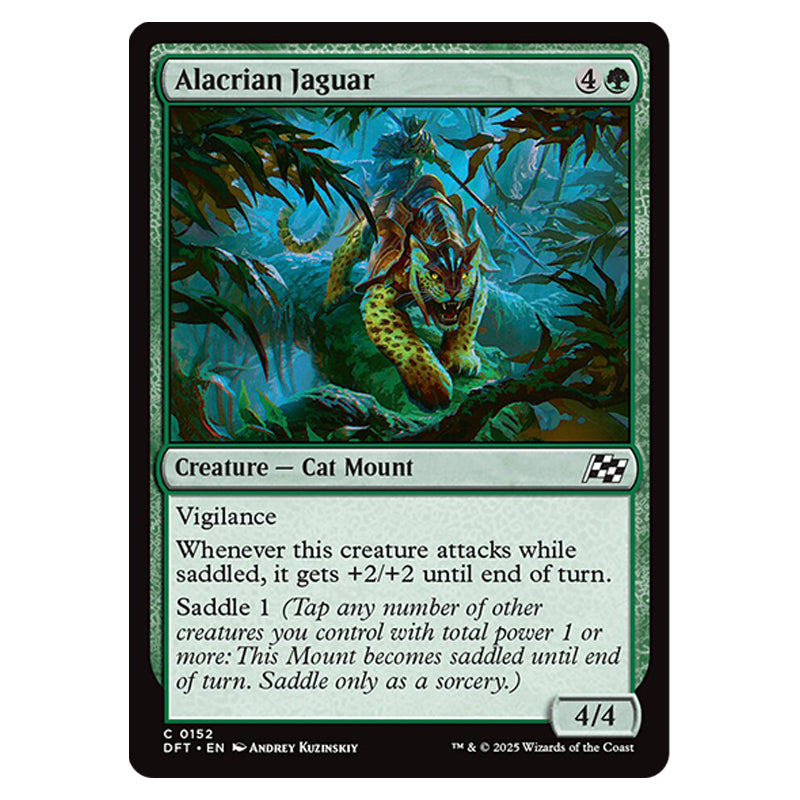 Alacrian Jaguar is a Common, Creature - Cat Mount card from the Magic The Gathering set Aetherdrift (MTGSC-DFT-0152)