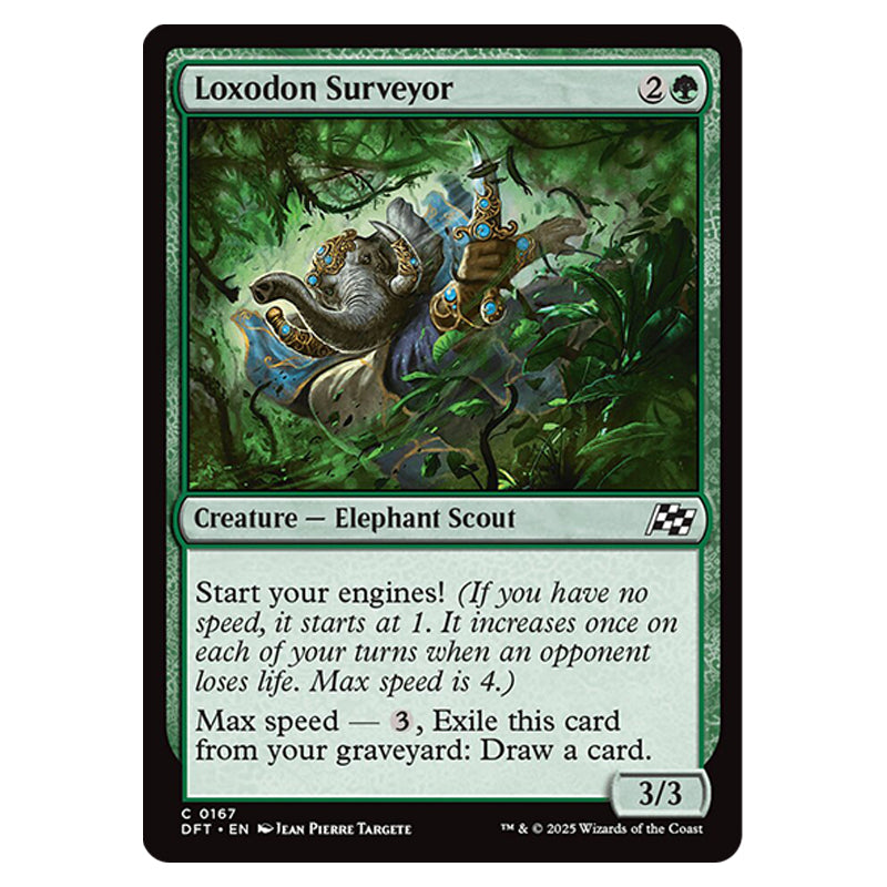 Loxodon Surveyor is a Common, Creature - Elephant Scout card from the Magic The Gathering set Aetherdrift (MTGSC-DFT-0167)