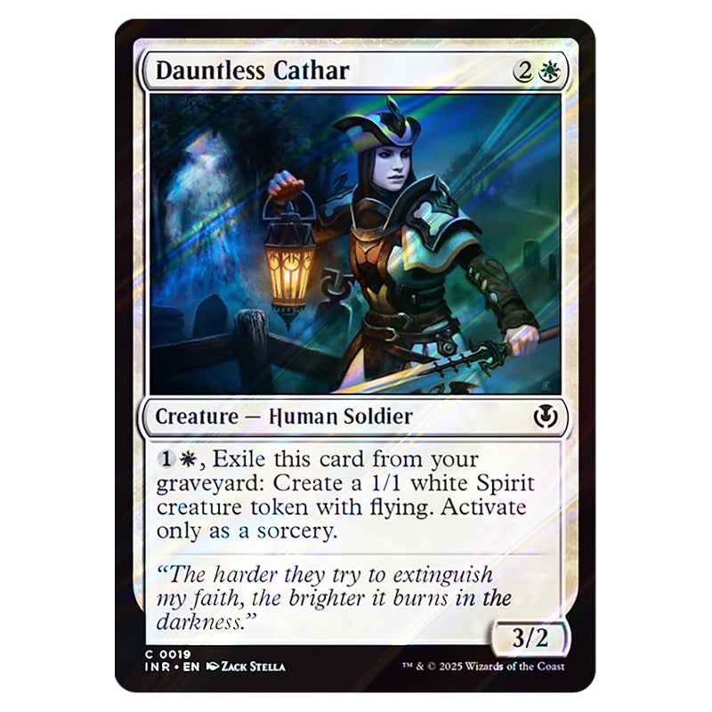 {1}{W}, Exile Dauntless Cathar from your graveyard: Create a 1/1 white Spirit creature token with flying. Activate only as a sorcery.