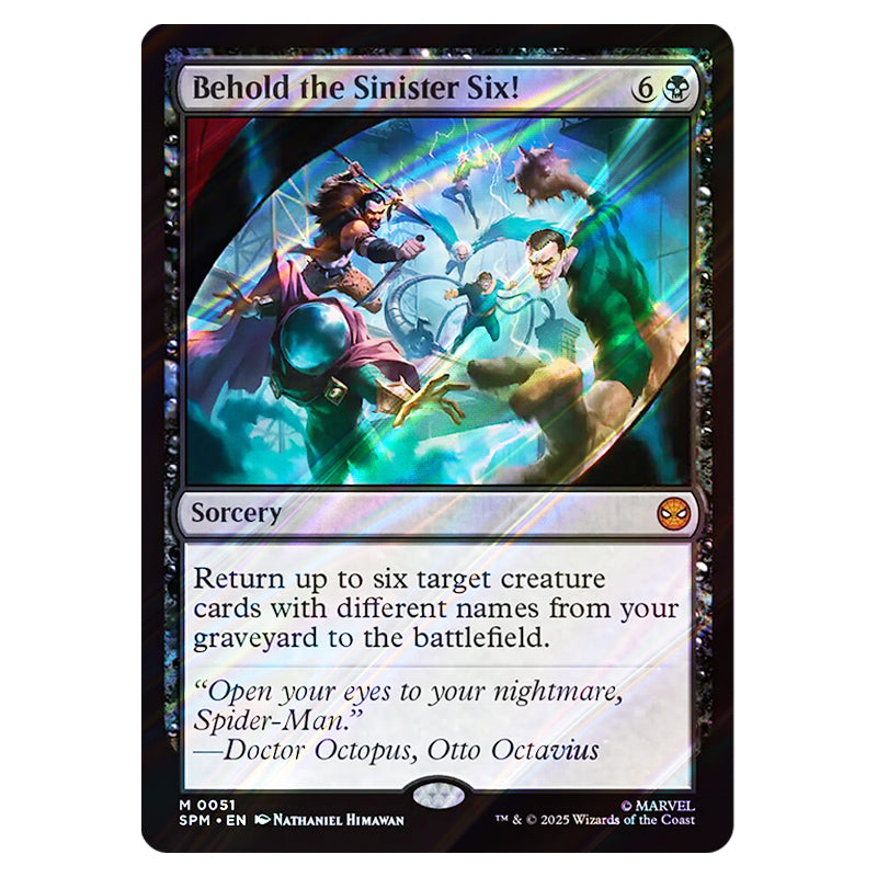 Behold the Sinister Six! is a Mythic, Sorcery card from the Magic The Gathering set Marvel's Spider-Man (MTGSC-SPM-0051)