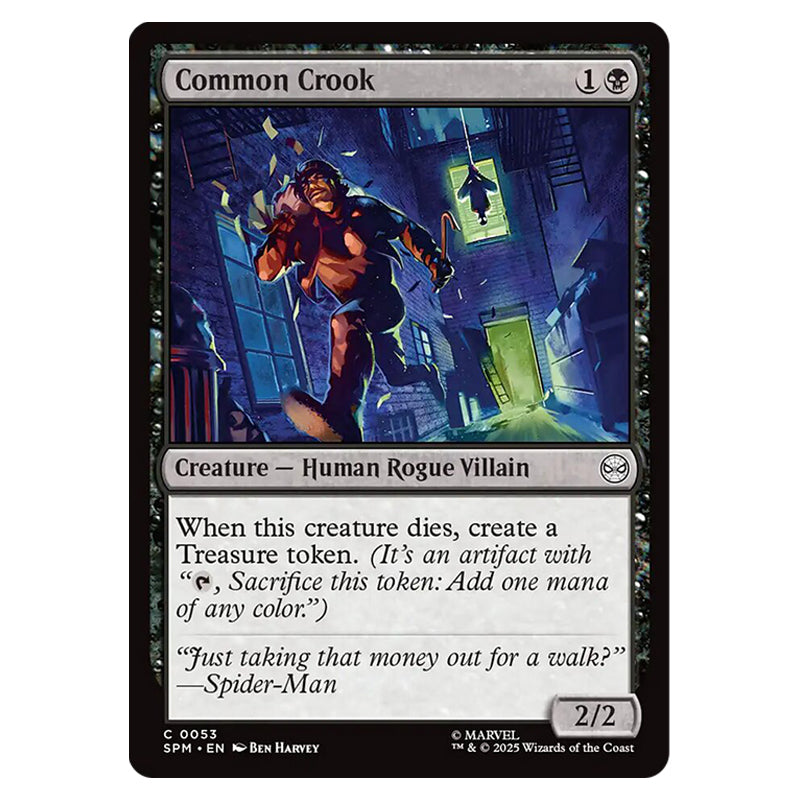 Common Crook is a Common, Creature - Human Rogue Villain card from the Magic The Gathering set Marvel's Spider-Man (MTGSC-SPM-0053)