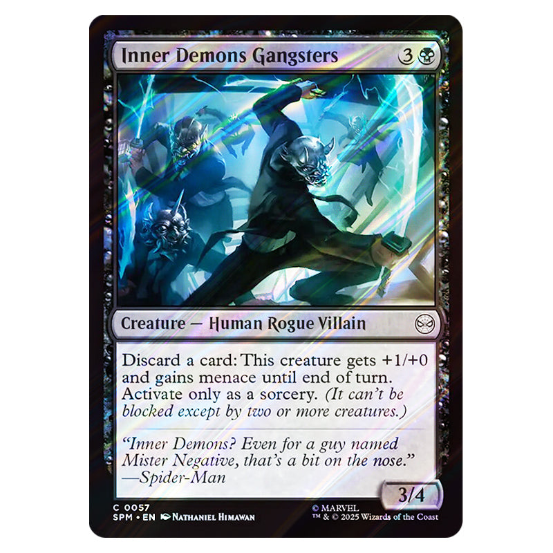 Inner Demons Gangsters is a Common, Creature - Human Rogue Villain card from the Magic The Gathering set Marvel's Spider-Man (MTGSC-SPM-0057)