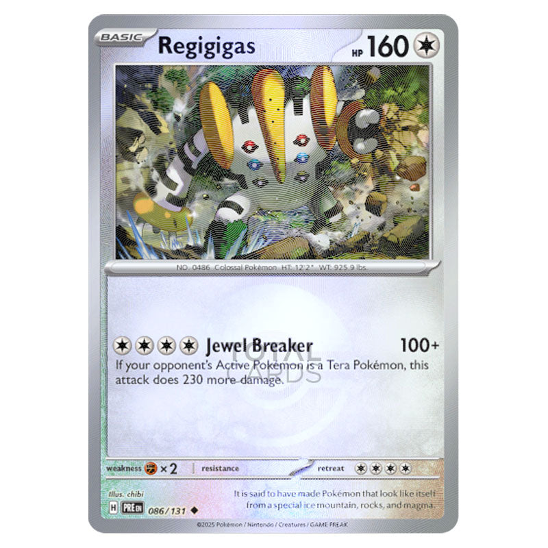 Regigigas is a Uncommon (Basic) Colorless type Pokémon card from SV8.5 - Prismatic Evolutons Reverse Holo Poke Ball (086/131)