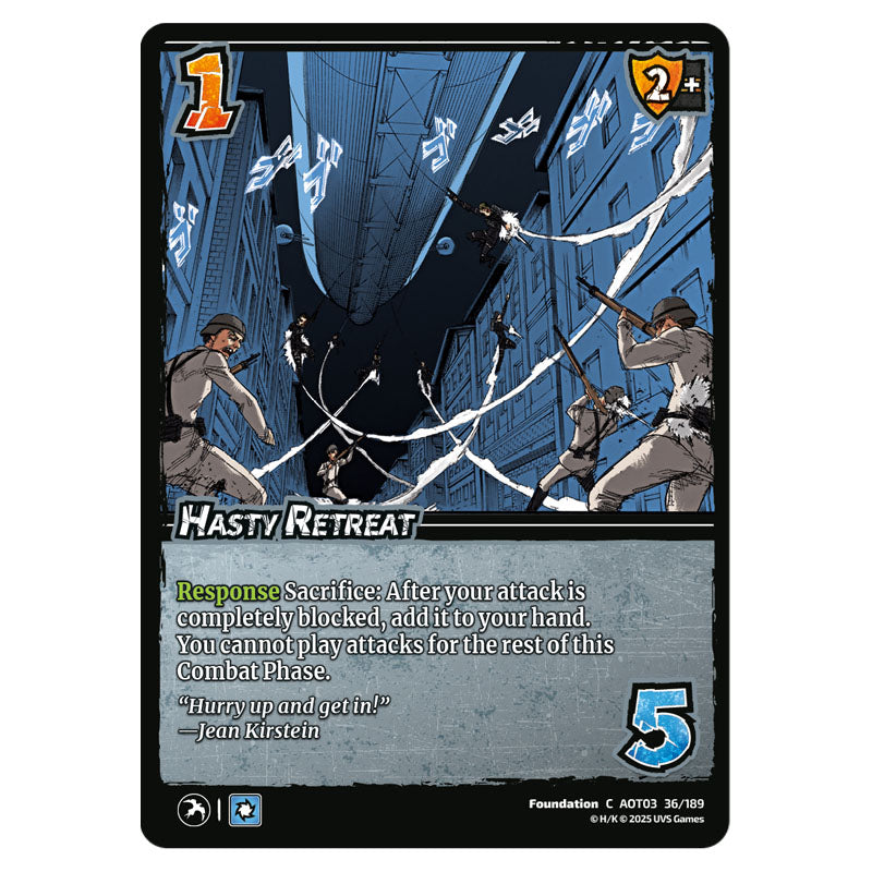 Hasty Retreat is a Normal card from the Attack on Titan set Apocalypse C 03 036/189