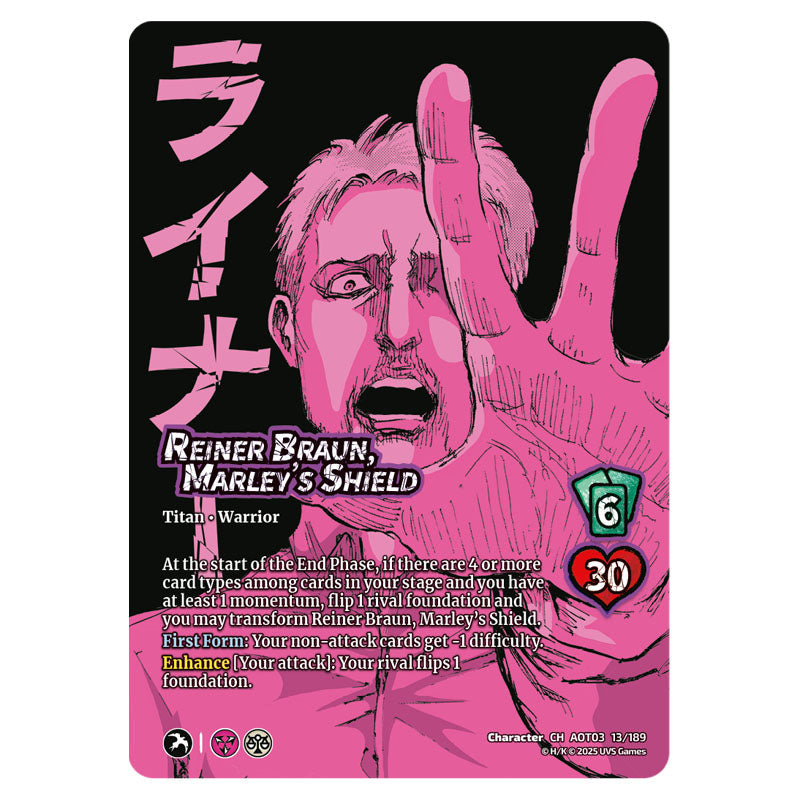 Reiner Braun, Marley's Shield // Armored Titan, Finale is a Normal card from the Attack on Titan set Apocalypse CH 03 013/189