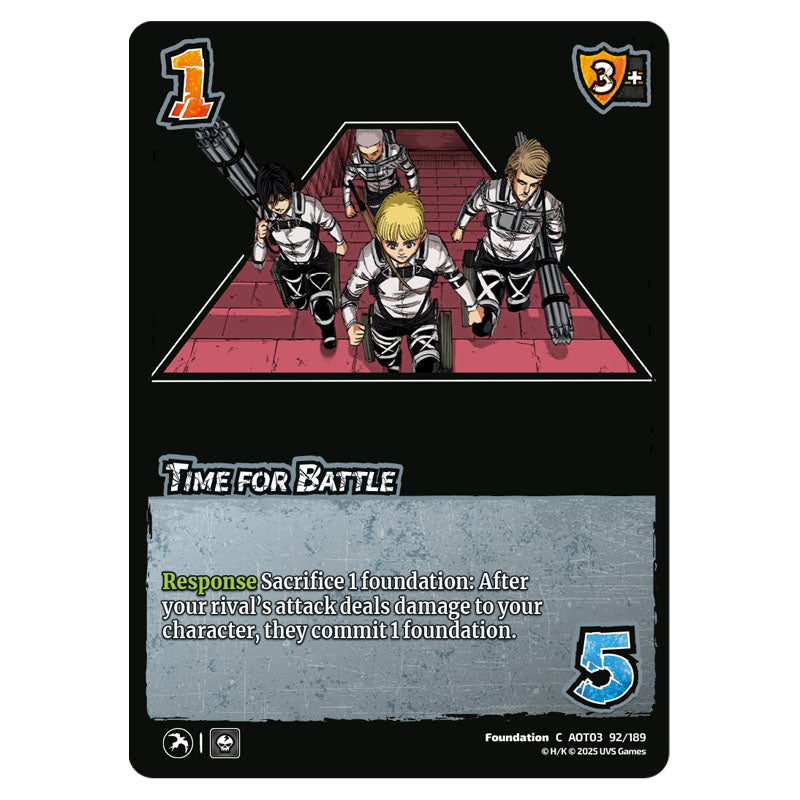 Time for Battle is a Normal card from the Attack on Titan set Apocalypse C 03 092/189