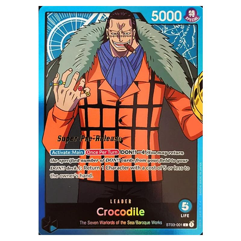 Crocodile ST03-001p is a One Piece - ST-03: Starter Deck - The Seven Warlords of the Sea - Super Pre-Release card from the expansion ST-03: Starter Deck - The Seven Warlords of the Sea - Super Pre-Release.