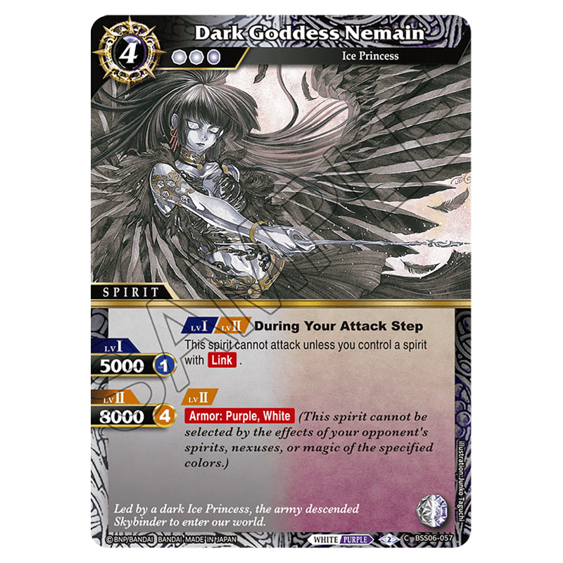 Dark Goddess Nemain is a Common card from the Battle Spirits Saga set Inverted World Chronicle - Generational Link (BSS06-057)