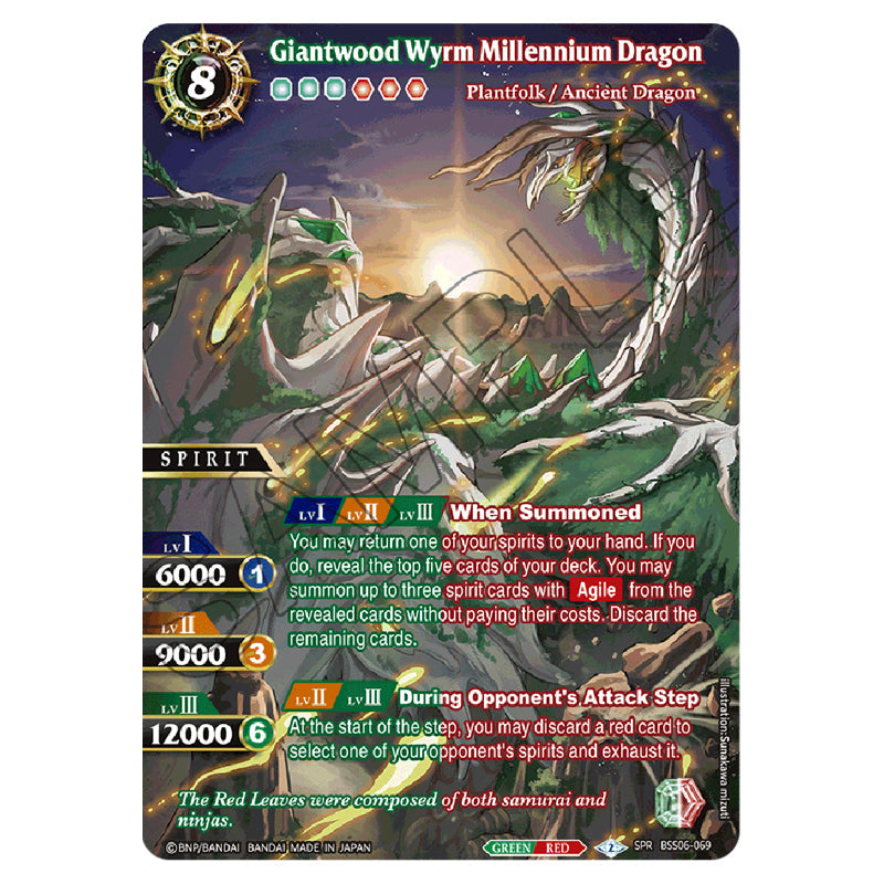 Giantwood Wyrm Millennium Dragon is a Special Rare card from the Battle Spirits Saga set Inverted World Chronicle - Generational Link (BSS06-069a)