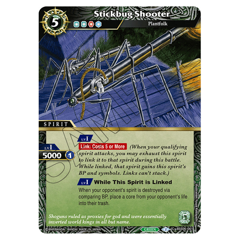 Stickbug Shooter is a Common card from the Battle Spirits Saga set Inverted World Chronicle - Generational Link (BSS06-061)
