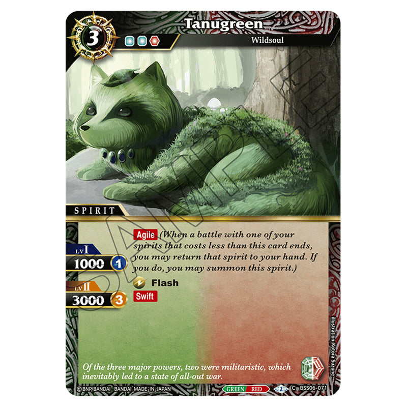 Tanugreen is a Common card from the Battle Spirits Saga set Inverted World Chronicle - Generational Link (BSS06-071)