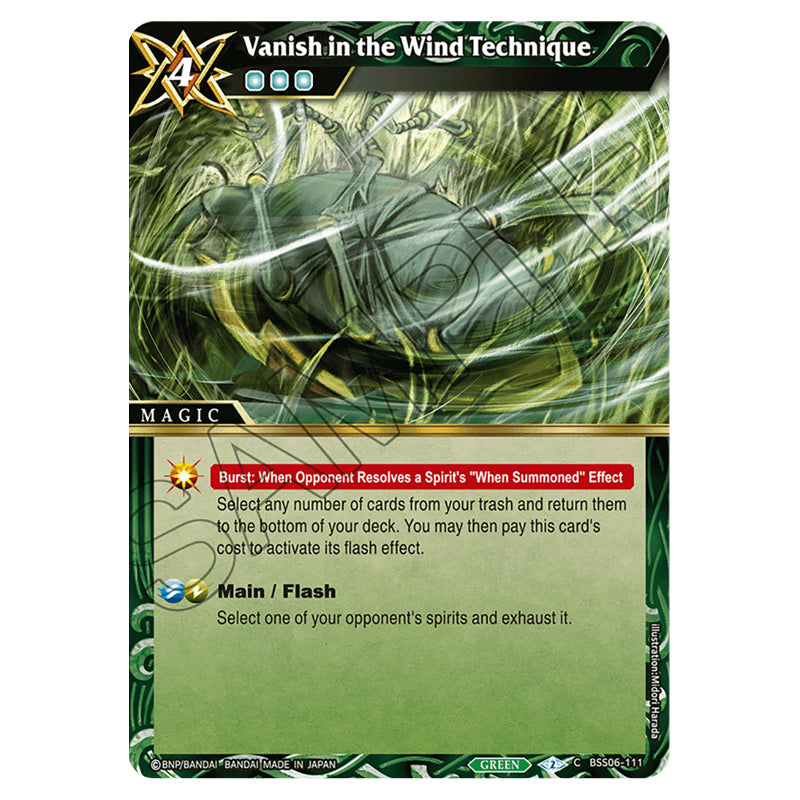 Vanish in the Wind Technique is a Common card from the Battle Spirits Saga set Inverted World Chronicle - Generational Link (BSS06-111)