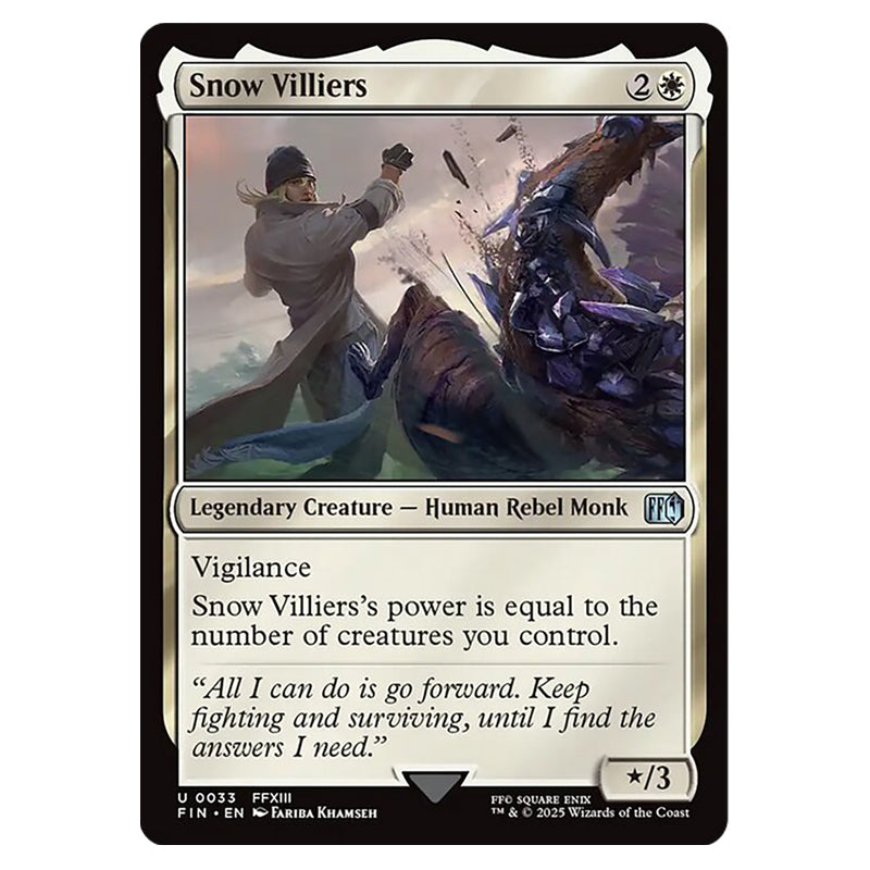 Snow Villiers is a Uncommon, Legendary Creature - Human Rebel Monk card from the Magic The Gathering set Universes Beyond - Final Fantasy (MTGSC-FIN-0033)