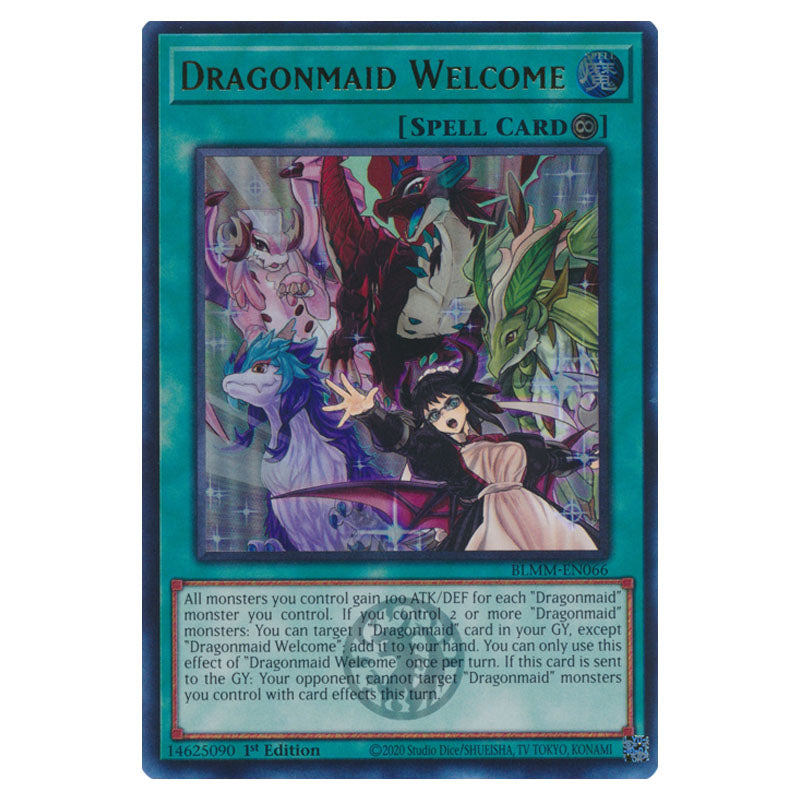 Dragonmaid Welcome is a Ultra Rare, Continuous Spell from the Yugioh set Battles of Legend: Monster Mayhem (BLMM-EN066)