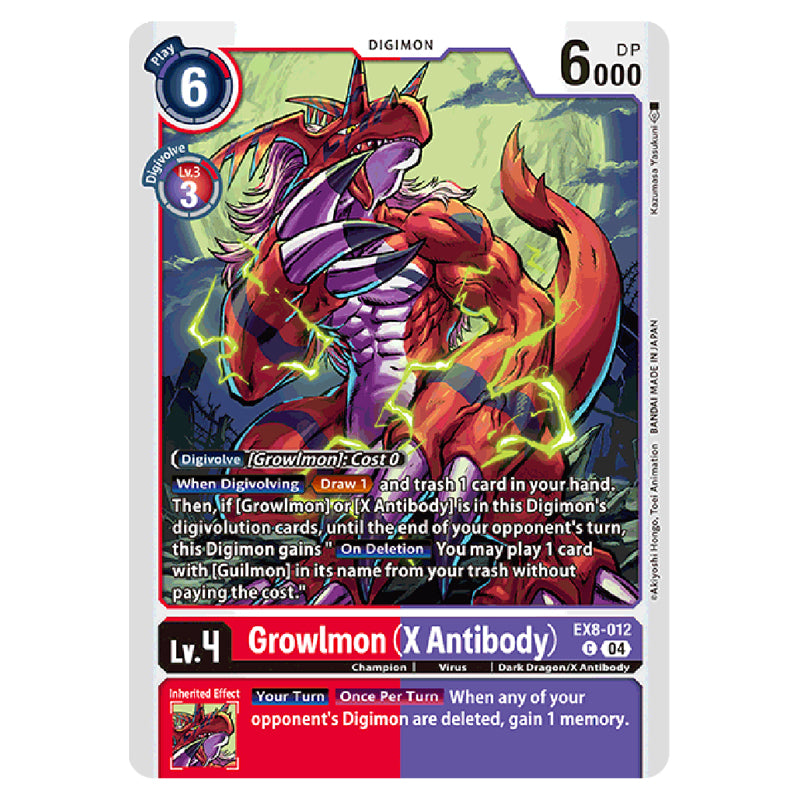 Growlmon (X Antibody) is a C, Digimon, from the set Digimon Card Game.