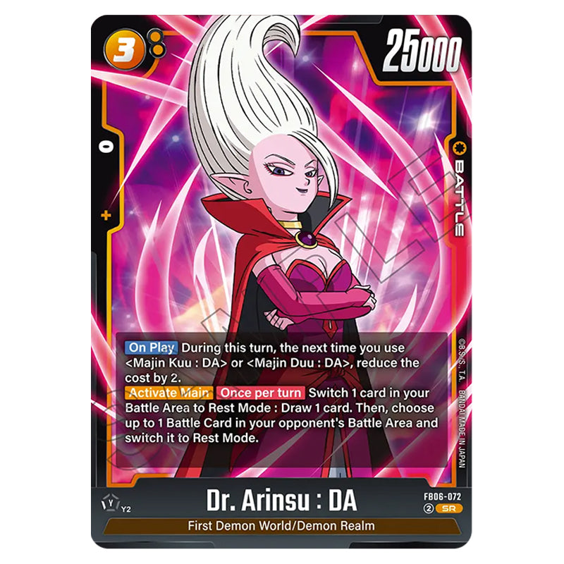 Dr. Arinsu : DA is a Super Rare, BATTLE card from the Dragon Ball Super Fusion World set FB06 - Rivals Clash (FB06-072)
