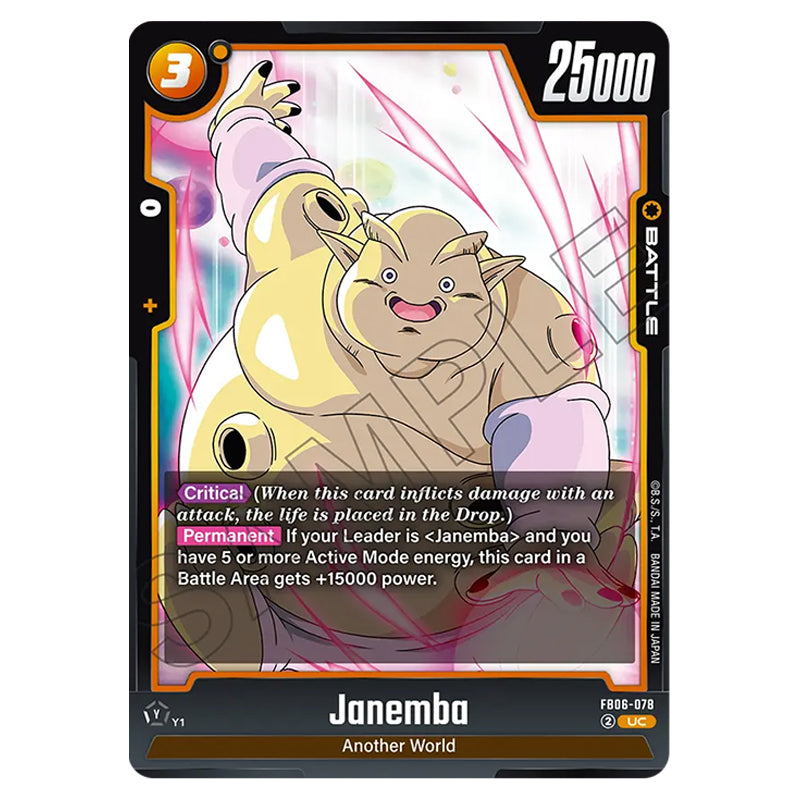Janemba is a Uncommon, BATTLE card from the Dragon Ball Super Fusion World set FB06 - Rivals Clash (FB06-078)