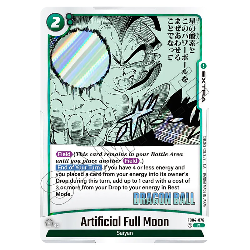 Artificial Full Moon is a Rare, Green card from the Dragon Ball Super Fusion World set SB01 - Manga Booster (FB04-076)
