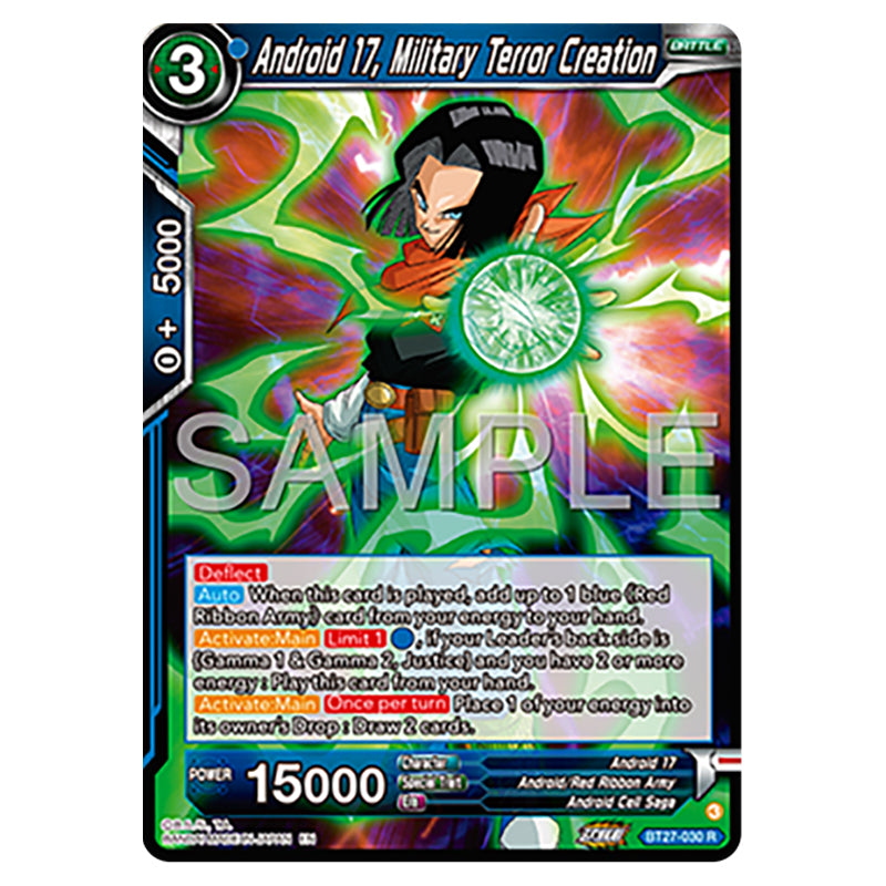 Android 17, Military Terror Creation is a Rare, BATTLE card from the Dragon Ball Super set B27 - History of Z (BT27-030)