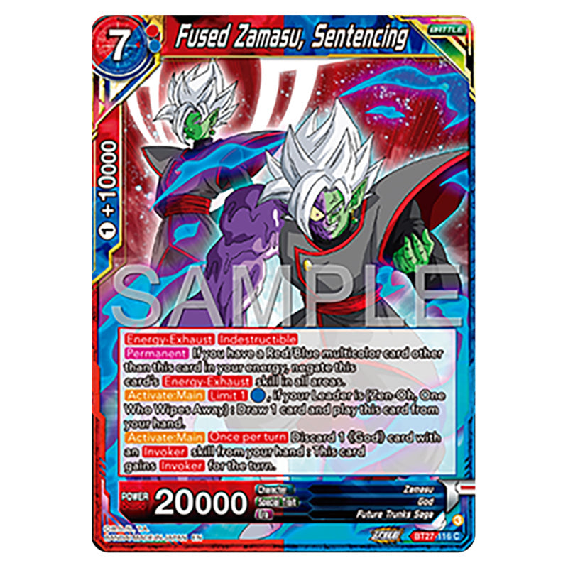 Fused Zamasu, Sentencing is a Common, BATTLE card from the Dragon Ball Super set B27 - History of Z (BT27-116)