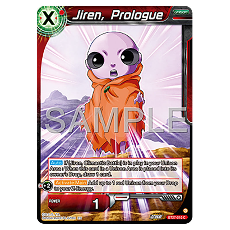Jiren, Prologue is a Common, UNISON card from the Dragon Ball Super set B27 - History of Z (BT27-010)