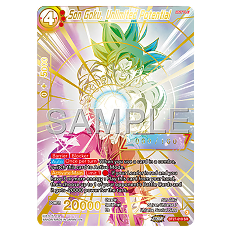 Son Goku, Unlimited Potential is a Super Rare, BATTLE card from the Dragon Ball Super set B27 - History of Z (BT27-019-PR)