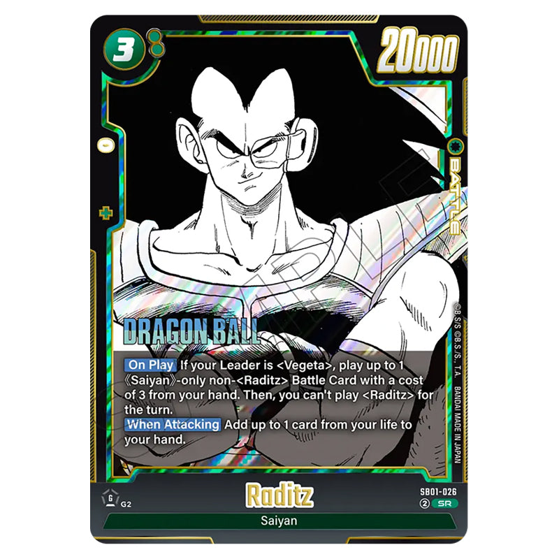 Raditz is a Super Rare, Green card from the Dragon Ball Super Fusion World set SB01 - Manga Booster (SB01-026)