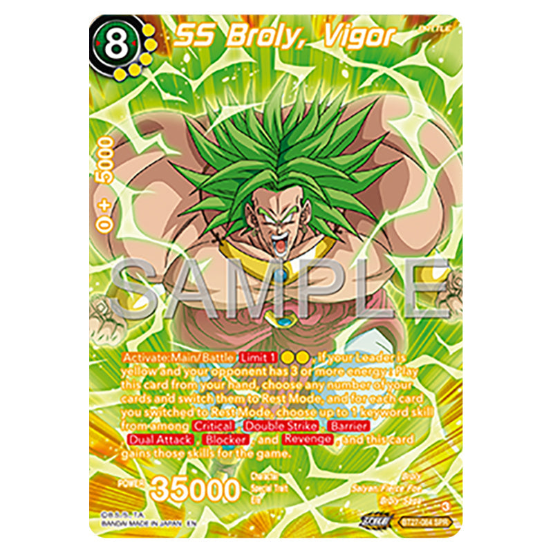 SS Broly, Vigor is a Special Rare, BATTLE card from the Dragon Ball Super set B27 - History of Z (BT27-084-SPR)