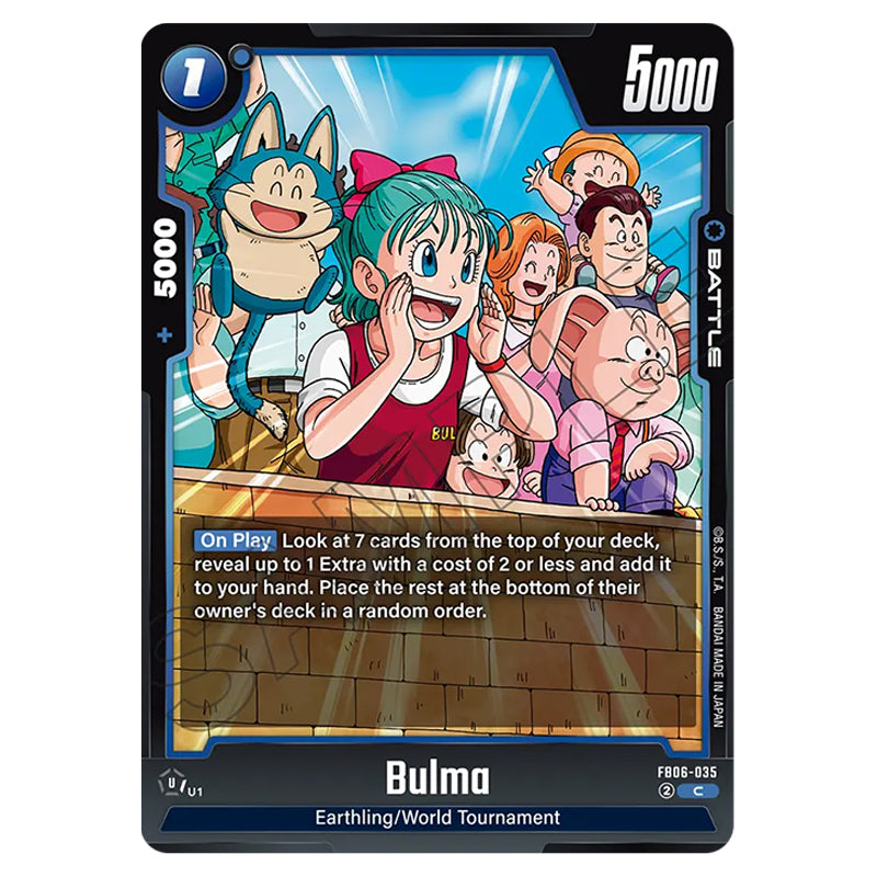 Bulma is a Common, BATTLE card from the Dragon Ball Super Fusion World set FB06 - Rivals Clash (FB06-035)