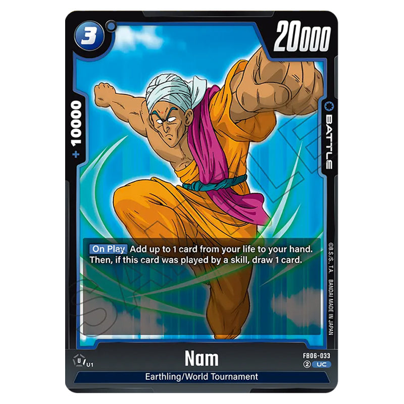 Nam is a Uncommon, BATTLE card from the Dragon Ball Super Fusion World set FB06 - Rivals Clash (FB06-033)