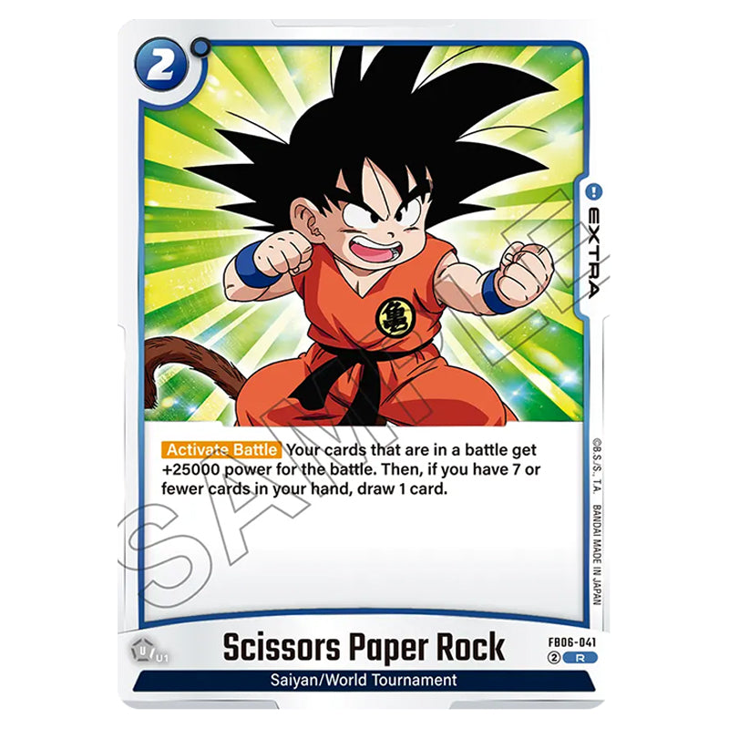 Scissors Paper Rock is a Rare, EXTRA card from the Dragon Ball Super Fusion World set FB06 - Rivals Clash (FB06-041)