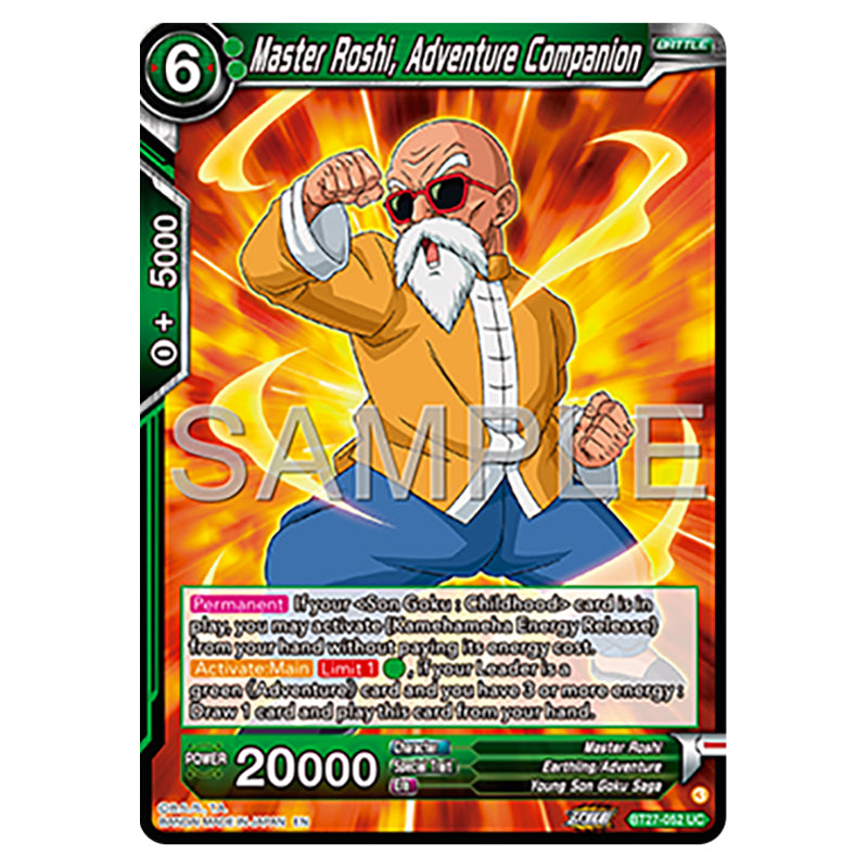 Master Roshi, Adventure Companion is a Uncommon, BATTLE card from the Dragon Ball Super set B27 - History of Z (BT27-052)