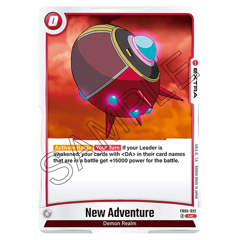 New Adventure is a Uncommon, EXTRA card from the Dragon Ball Super Fusion World set FB05 - New Adventure (FB05-022)