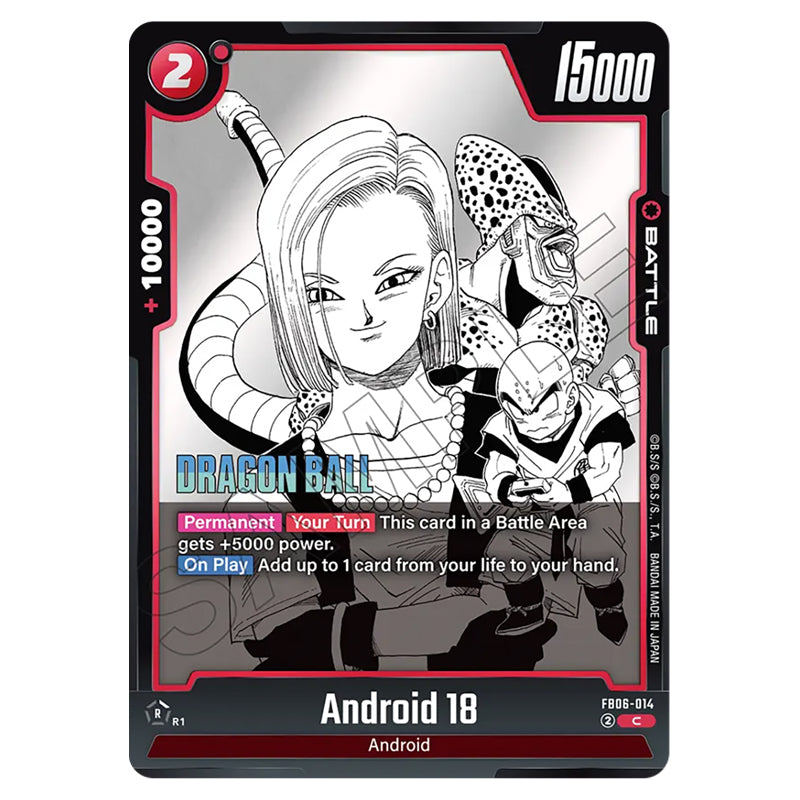Android 18 is a Common, Red card from the Dragon Ball Super Fusion World set SB01 - Manga Booster (FB06-014)