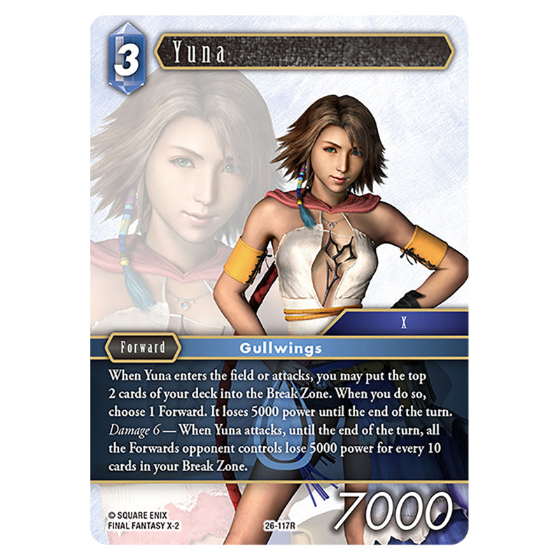 Yuna is a Rare (Forward / Water) foil card from the Final Fantasy set Gunslinger in the Abyss (26-117R)
