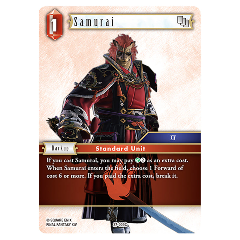 Samurai is a Common (Backup / Fire) foil card from the Final Fantasy set Journey of Discovery (27-009C)