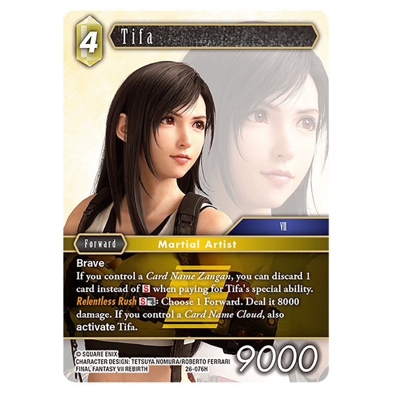 Tifa is a Hero (Forward / Earth) foil card from the Final Fantasy set Gunslinger in the Abyss (26-076H)