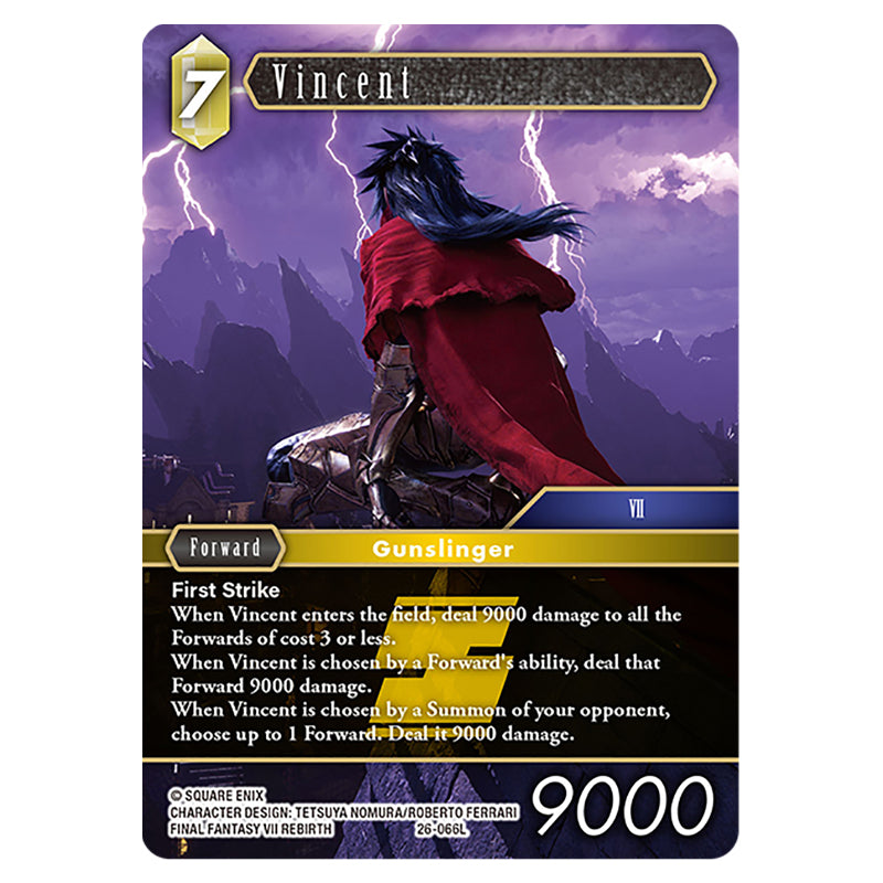 Vincent is a Legend (Forward / Earth) foil card from the Final Fantasy set Gunslinger in the Abyss (26-066L)