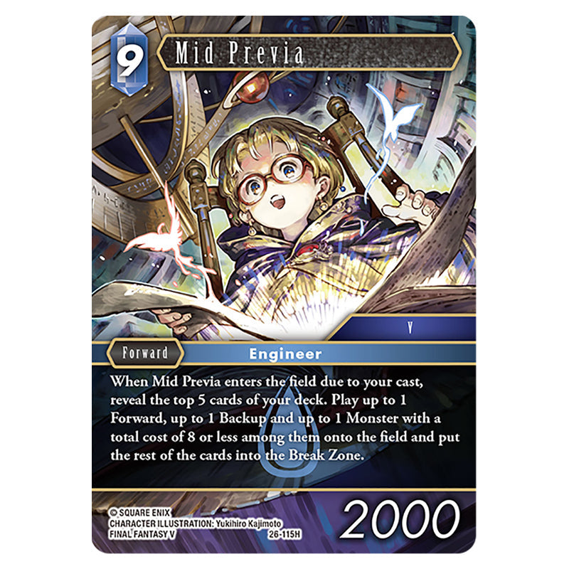 Mid Previa is a Hero (Forward / Water) foil card from the Final Fantasy set Gunslinger in the Abyss (26-115H)