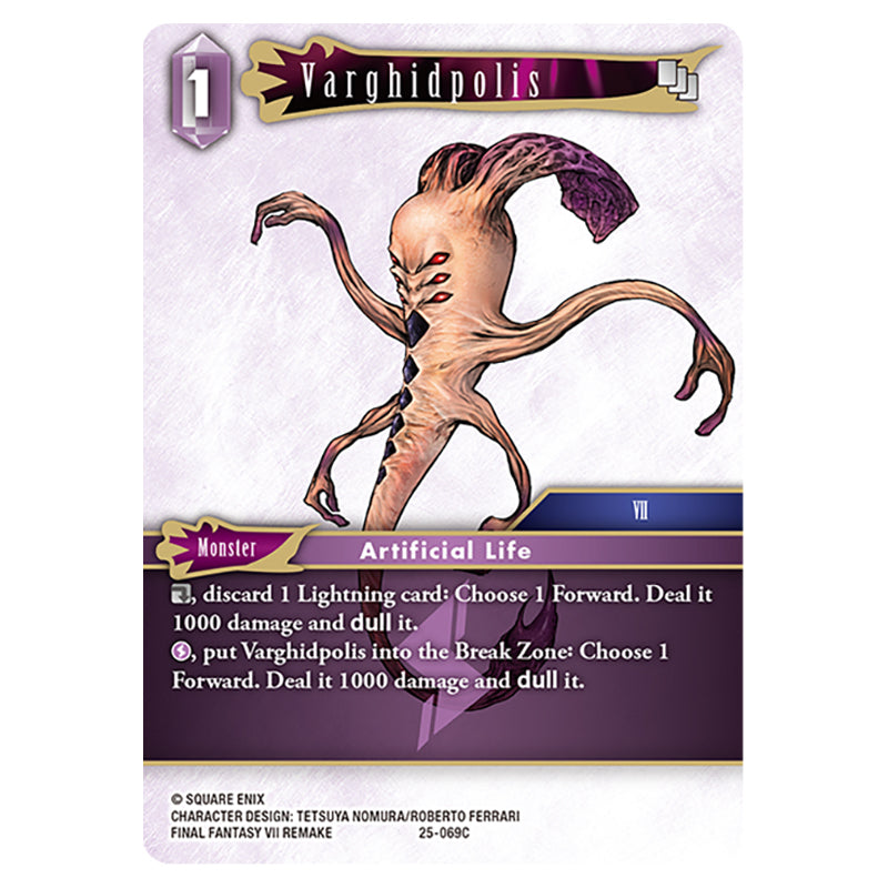 Varghidpolis is a Common (Monster / Lightning) foil card from the Final Fantasy set Tears of the Planet (25-069C)