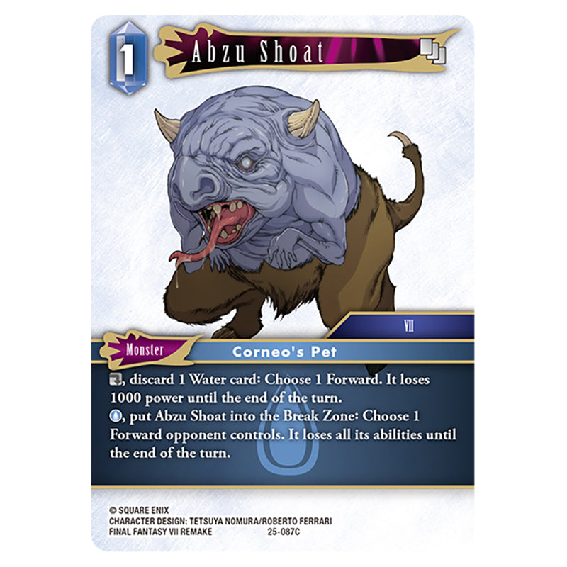 Abzu Shoat is a Common (Monster / Water) foil card from the Final Fantasy set Tears of the Planet (25-087C)