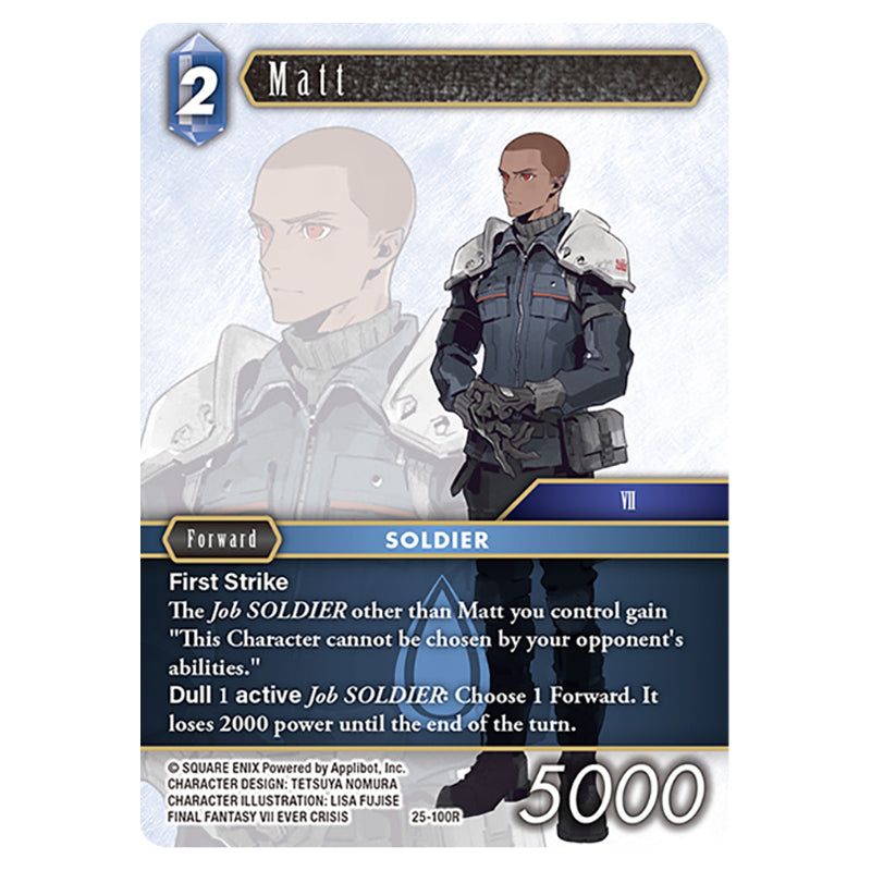 Matt is a Rare (Forward / Water) foil card from the Final Fantasy set Tears of the Planet (25-100R)