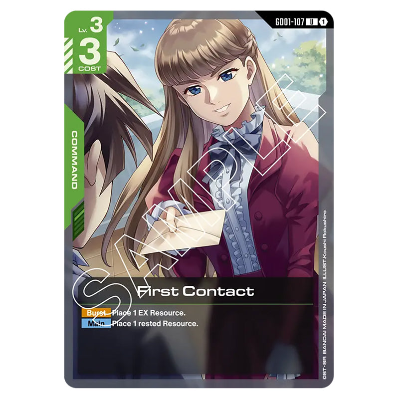 First Contact is a COMMAND card from the Gundam Card Game set Newtype Rising (GD01-107)