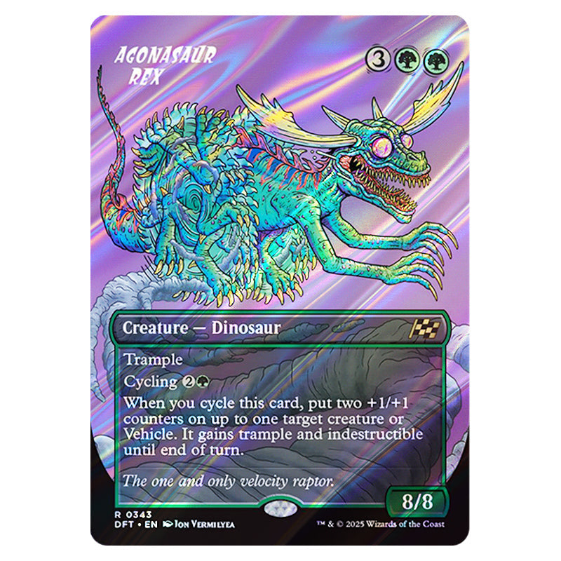 Agonasaur Rex is a Rare, Creature - Dinosaur card from the Magic The Gathering set Aetherdrift (MTGSC-DFT-0343)