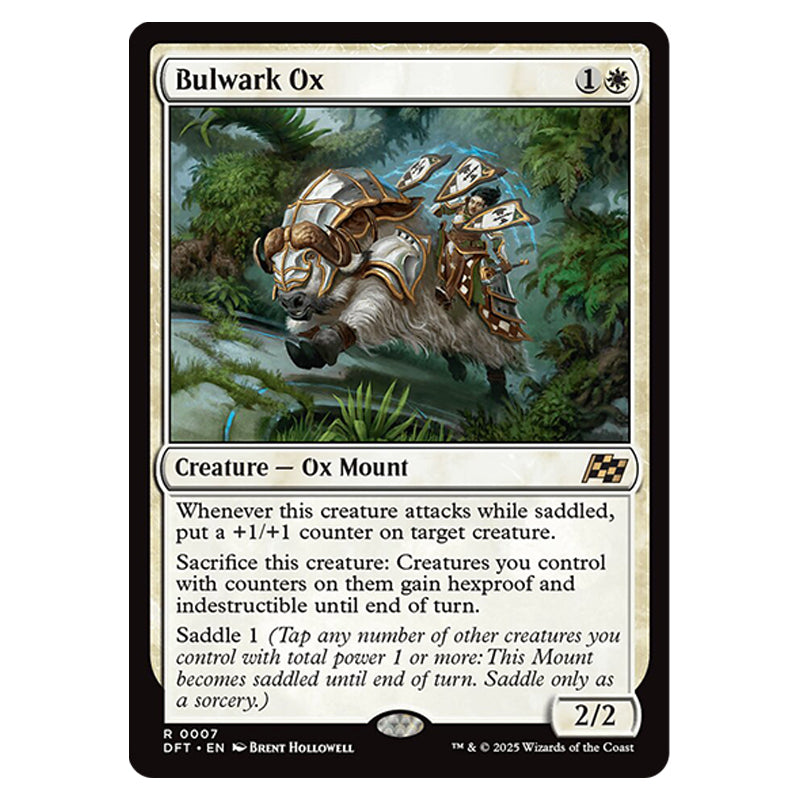 Bulwark Ox is a Rare, Creature - Ox Mount card from the Magic The Gathering set Aetherdrift (MTGSC-DFT-0007)