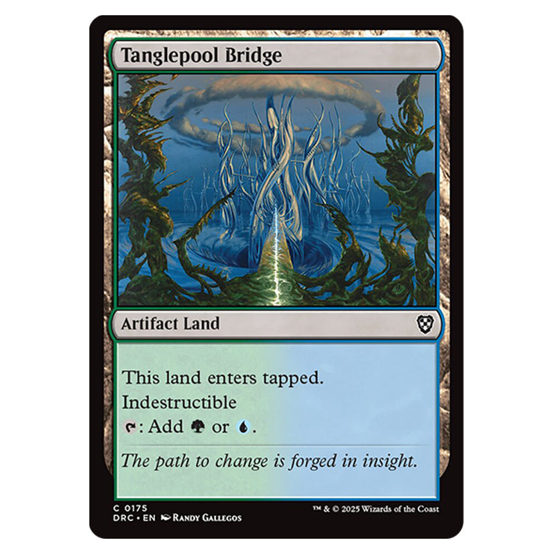 Tanglepool Bridge is a Common, Artifact Land card from the Magic The Gathering set Aetherdrift Commander (MTGSC-DRC-0175)