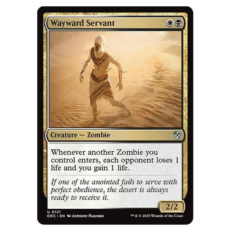 Wayward Servant is a Uncommon, Creature - Zombie card from the Magic The Gathering set Aetherdrift Commander (MTGSC-DRC-0121)