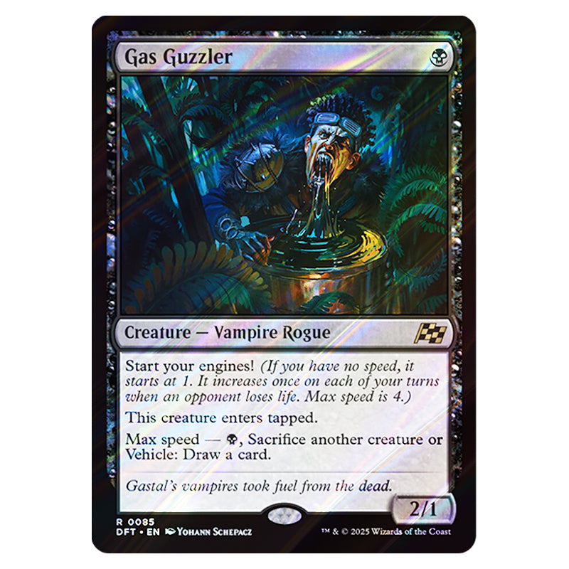 Gas Guzzler is a Rare, Creature - Vampire Rogue card from the Magic The Gathering set Aetherdrift (MTGSC-DFT-0085)