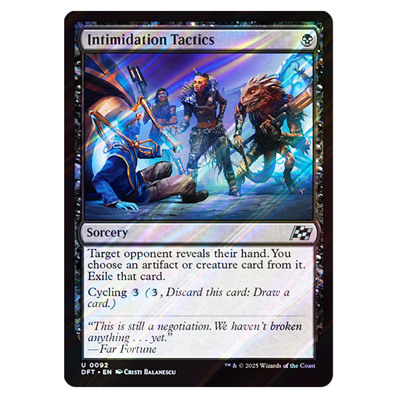 Intimidation Tactics is a Uncommon, Sorcery card from the Magic The Gathering set Aetherdrift (MTGSC-DFT-0092)